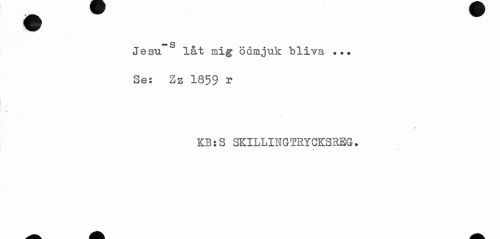 //// * s //// Jesu lat mig ödmjuk bliva ... //// Se: Zz 1859 r //// * //// ? //// KB:S SKILLINGTRYCKSREG. ////
