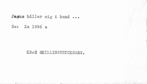 //// Jesus håller mig i hand ... //// Sex Zz 1886 a //// ! //// i //// KB:S SKILLINGTRYCKSREG. ////