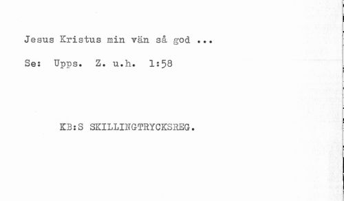//// j //// < //// Jesus Kristus min vän så god ... //// Se: Upps. Z. u.h. 1:58 //// j //// r- //// KB:S SKILLINGTRYCKSREG. //// < ////