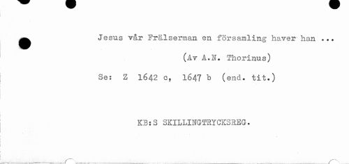 //// ^^ Jesus vår Frälserman en forsamling haver han ... //// (Av A.N. Thorinus) //// I Se: Z 1642 c, 1647 b (end. tit.) //// I //// t //// f //// 1 //// ! ////