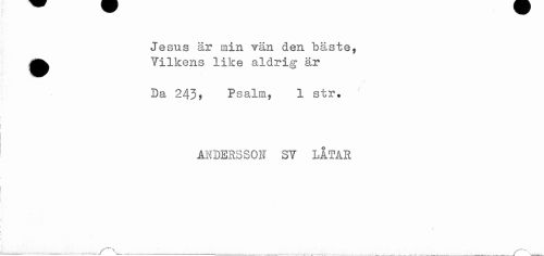 //// Jesus är min vän den bäste. //// Vilkens like aldrig år //// Da 243, Psalm, 1 str. //// i //// t //// 1 //// ANDERSSON SY LÅTAR //// ! //// 1 ////