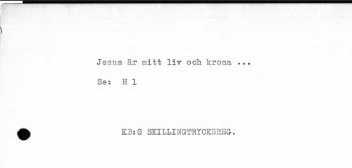 //// . //// Jesus år mitt liv och krona ... //// Se: Hl //// ^ KB:S SKILLINGTRYCKSREG. ////