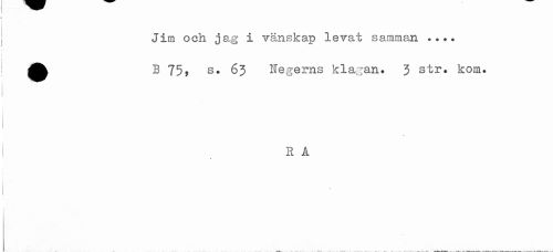 //// Jim och jag i vänskap levat samman .... //// ^^ B 75, s. 63 Negerns klagan. 3 str. kom. //// < //// 1 R A //// < ////