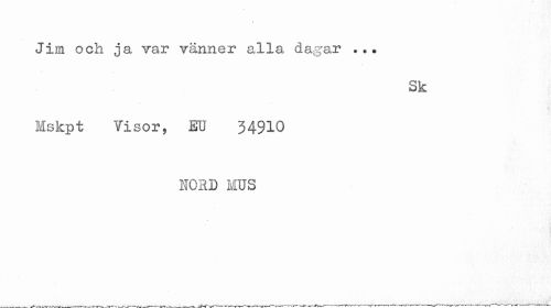 //// Jim och ja var vänner alla dagar ... //// Sk //// Mskpt Visor, EU 34910 //// NORD MUS ////