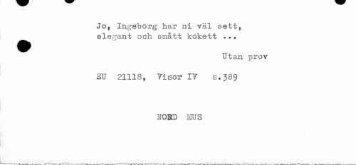 //// Jo, Ingeborg har ni väl sett, //// ^^ elegant och smått kokett ... //// Utan prov //// EU 21118, Visor IV s.389 //// NOBD ms //// !- . - ////