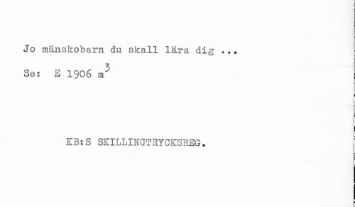 //// Jo mänskobarn du skall lära dig ... //// Se: E 1$06 m^ //// - //// KB:S SKILLINGTRYCKSREG. ////