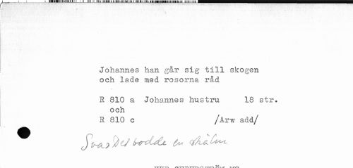 //// ) //// Johannes han går sig till skogen //// och lade med rosorna råd //// R 810 a Johannes hustru 18 str. //// och //// R 810 c /Arw add/ ////
