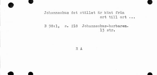//// Johanneshus det stället år känt fr&n //// ort till ort ... //// B $8:1, s. 218 Johanneshus-barbaren. //// 13 str. //// * //// R A ////