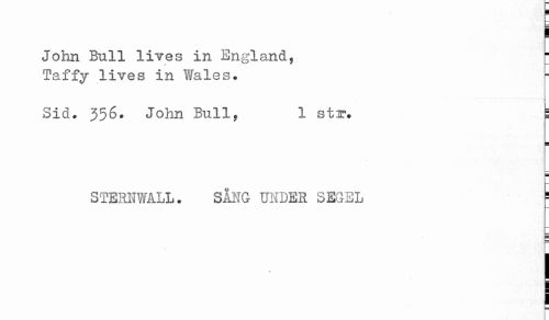 //// ] //// John Bull lives in England, * //// Taffy lives in Wales. //// Sid. 356* John Bull, 1 står. B //// STERNWALL. SÅNG UNDER SEGEL ^ ////