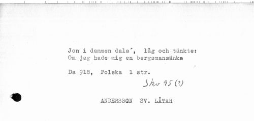 //// Jon i dammen dala^, låg och tänkte: //// Om jag hade mig en hergsmansänke //// *** ^ //// Da 918, Polska 1 str. //// ^ AIVDER3SQN SV. LÅTAR ////