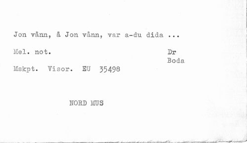 //// Jon vann, & Jon vånn? var a-du dida ... //// Me1. not. Dr //// Boda //// Mskpt. Tisor. EU 354$8 //// NORD MUS ////