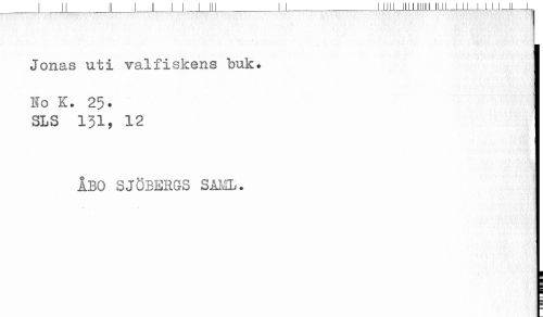 //// Jonas uti valfiskens buk. ] //// No K. 25. ] //// SLS 131, 12 ] //// ÅBO SJÖBERGS SAHL. ] ////