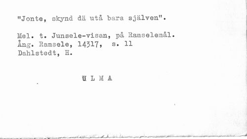 //// "Jonte, skynd dä utå bara sjålven". //// Mel. t. Junsele-visan, på Ramselemål. //// Ang. Ramsele, 14317? s. 11 //// Dahlstedt, H. //// U L M A //// * ////