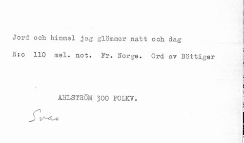//// Jord och himmel jag glömmer natt och dag //// N:o 110 mel. not. Fr. Norge. Ord av Bottiger //// AHLSTRÖM 300 FOLKV. ////