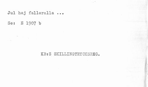 //// Jul hej falleralla ... //// Se: E 1907 b //// KB:S SKILLINGTRYCKSREG. //// * //// i //// 1 ////