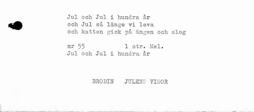 //// Jul och Jul i hundra år //// och Jul så länge vi leva //// och katten gick på ängen och slog //// nr 55 1 str. Mel. //// Jul och Jul i hundra år //// BRODIN JULENS VISOR ////