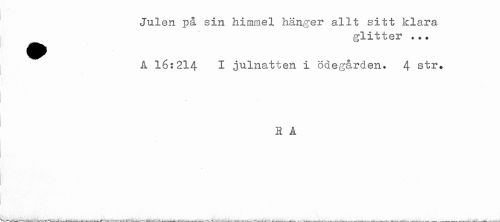 //// Julen på sin himmel hänger allt sitt klara //// glitter ... //// A 16:214 I julnatten i ödegården. 4 str. //// ' R A ////