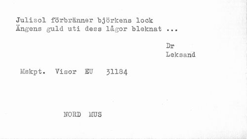//// Dr //// Leksand //// Mskpt. Visor EU 3II84 //// NORD MUS ////