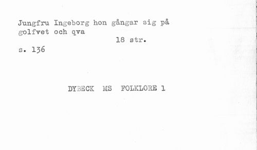 //// Jungfru Ingeborg hon gångar sig på //// golfvet och qva //// 18 str. //// s. 136 //// DYBECK MS FOLKLORE 1 //// * ////