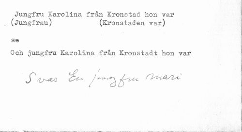 //// Jungfru Karolina från Krönstad hon var //// , (Jungfrau) (Krönstaden var) //// se //// Och jungfru Karolina frå,n Kronstadt hon var ////
