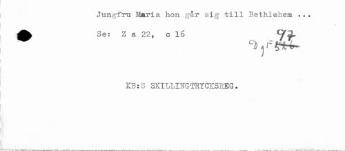 //// Jungfru Mmria hon går sig till Bethlehem ... //// Se: Z a 22, c 16 Q^ //// i' //// KB:S SKILLINGTRYCKSREG. ////