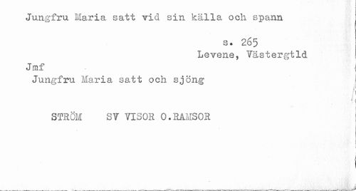 //// Jungfru. Maria satt vid sin källa och spann //// s* 265 //// Levene, Västergtld //// Jmf - i //// Jungfru Maria satt och sjöng //// I //// STRÖM SV VISOR 0.RAMSOR //// < ////