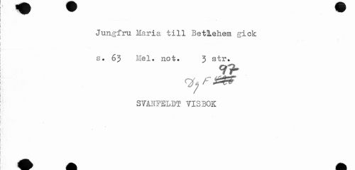 //// ! //// ... . . //// : Jungfru Maria till Betlehem gick //// ! s. 63 Mel. not. 3 str. //// SVÅI^FELDT VISBOK //// ! ////