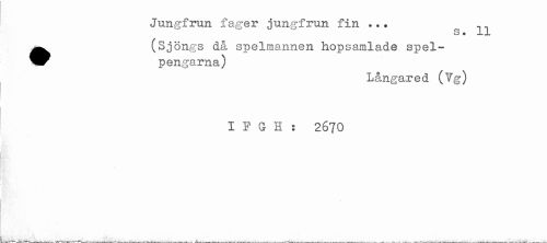 //// Jungfrun fager jungfrun fin ... -. //// & * ^JL //// ^^ (Sjöngs då spelmannen hopsamlade spel- //// pengarna) //// Långared (Vg) //// I F G H : 2670 //// ! //// (jKn'! * ////