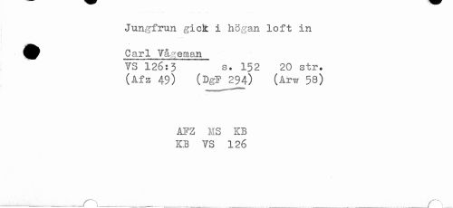//// Jungfrun gick i högan loft in //// Carl Vågeman //// VS 126:3 s. 152 20 str. //// (Afz 49) (DgF 294) (Arw 58) //// AFZ HS KB //// KB VS 126 //// . ______________^ _ ______________________ ////
