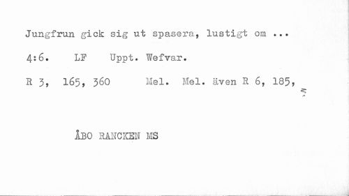 //// Jungfrun gick sig ut spasera, lustigt om ... //// 4:6. LF Uppt. Wefvar. //// R 3, 165, 360 Mel. Mel. även Ro, 185, //// ÅBO RANCKEN MS ////