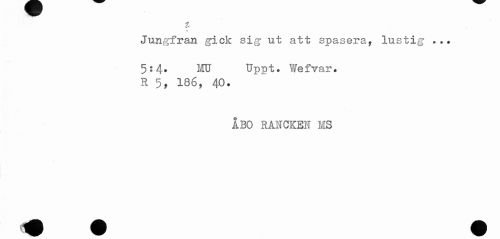 //// 2 //// v //// Jungfran gick sig ut att spasera, lustig ... //// 5:4. MU Uppt. Wefvar. //// R 5, 186, 40. //// ÅBO RANCKEN MS ////