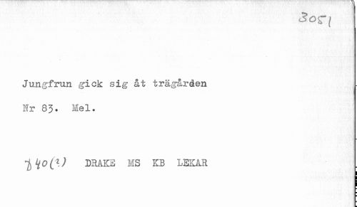 //// Jungfrun gick sig åt trägården //// Nr 83. Mel. //// DRAKE MS KB LEKAR ////