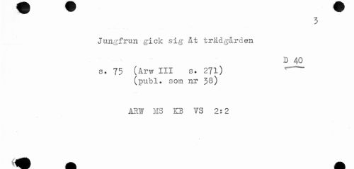 //// 3 //// Jungfrun gick sig åt trädgården //// D 40 //// s. 75 (Arw III s. 271) //// (publ. som nr 38) //// ARW ns KB VS 2:2 ////