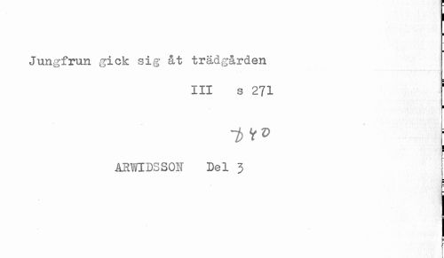 //// Jungfrun gick sig åt trädgården //// III s 271 ' //// ARWIDSSON Del 3 ////