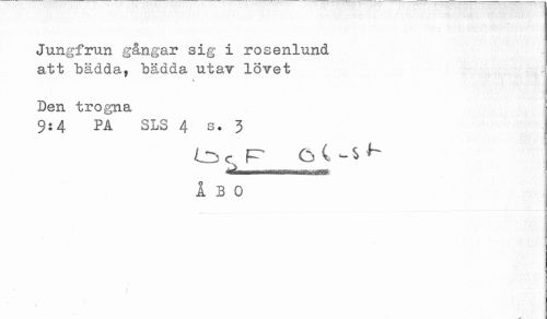 //// Jungfrun gångar sig i rosenlund //// att bädda, bädda utav lovet //// * //// Den trogna //// PÅ SLS 4 s. 3 //// ^ F^ (j ( ^ //// ÅBO ////