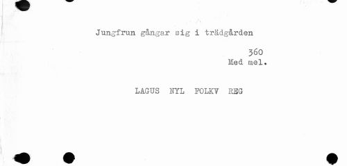 //// ! - //// Jungfrun gångar sig i trädgården //// 360 //// Hed mel. //// - //// LAGUS NYL FOLKV REG //// C ////