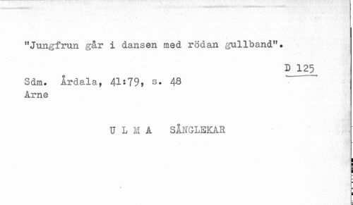 //// "Jungfrun går i dansen med rödan .gullband"^ //// D 125 //// Sdm. Ardala, 41-79? s. 48 //// Arne //// ULM A SÅNGLEKAR ////