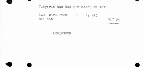 //// Jungfrun hon bad sin moder om lof //// 140 Warulfven II s, 273 //// mel not DgF 54 //// ARWIDS SON ////