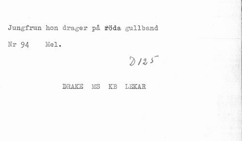 //// Jungfrun hon drager på a^öda gullband //// Nr 94 Mel. //// DRAKE MS KB LEKAR //// - ////