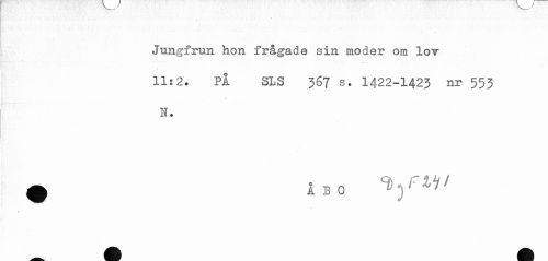 //// Jungfrun hon frågade sin moder om lov //// * \ < - //// 11:2. PÅ SLS 367 s. 1422-1423 nr 553 //// N. //// * iBO T)'^' ////