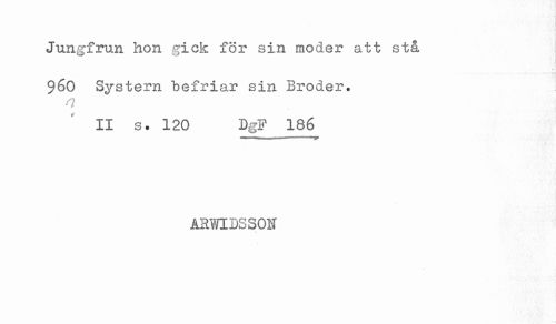 //// Jungfrun hon gick för sin moder att sta //// $60 Systern befriar sin Broder. //// II s. 120 DgF 186 //// ARliVIDSSON ////