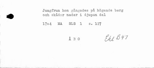 //// Jungfrun hon gångades på högande berg //// ^^ och skådar neder i djupan dal //// 17:4 HÅ SLS 1 s. 127 //// iBO //// - //// - ////