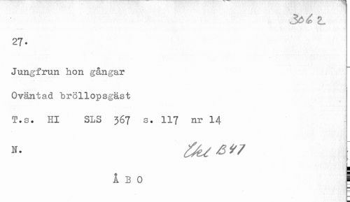 //// 27. //// Jungfrun hon gångar //// Oväntad bröllopsgäst //// T.s. Hl SLS 367 s. 117 nr 14 //// ' !! //// ÅBO ^ ////