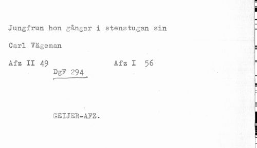 //// a //// Jungfrun hon gångar i stenstugan sin ^ //// Carl Vågeman g //// Afz II 49 Afz I % //// DgF 294 //// C " //// g //// ) — //// GEIJER-ÅFZ. j ////