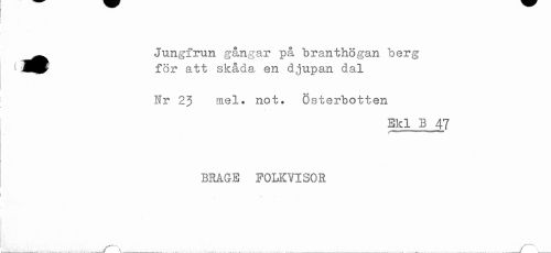 //// ^ Jungfrun gångar på branthögan berg //// (å))^ för att skåda en djupan dal //// Nr 23 mel. not. Österbotten //// Ekl B 47 //// BRåGE FOLKVISOR //// < //// i //// t ////