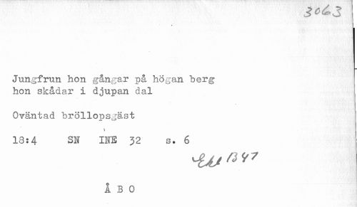 //// ,3 ^ ^ O //// Jungfrun hon gångar på högan her g //// hon skådar i djupan dal //// Oväntad bröllopsgäst //// t //// 18:4 SN INE 32 s. 6 ////
