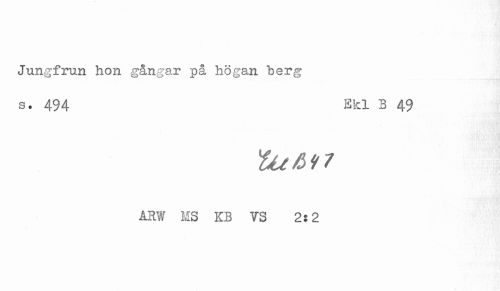 //// Jungfrun hon gångar på högan berg //// s. 494 EM. B 4.9 //// ARW MS KB VS 2:2 ////