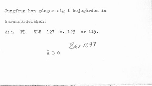 //// Jungfrun hon gångar sig i bojogården in //// Barnamörderskan. //// 4:4. PL SLS 127 s. 123 nr 11$. //// ÅBO ////