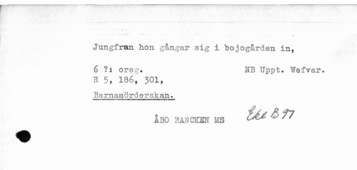 //// " ' ' * - ^ # //// Jungfrnn hon gångar sig i bojogården in, //// ^ .. .. . - * //// 6 ?: oreg. NB Uppt. Wefvar. //// R 186, 301, //// Barnamörderskan. //// ÅBO RANCKEN MS ^ ^ ////