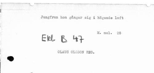 //// -------.-...-.---------^ , //// ] //// Jungfrun hon gångar sig i högande loft //// < //// M. mel. 28 //// i //// ) //// OLAUS OLSSON REG. //// - ////